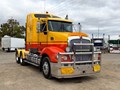 2016 Kenworth T909 6x4 prime mover,550 hp Cummins ISX EGR DPF eng-Has done 265000 kms on Cuimmins rebuild-18 spd trans-RTL022918B-Dana D46-170 rear axles @ 3.91 on KW Airglide 460 air bag susp,Alloy wheels and bull bar,Super singes on steer,50" high roof intergreated sleeper with double bunks and Icepack 2000-NC bunk air con,PTO hydraulics for end and side tippers,2" fixed QRTT,Diff and x locks to both rear axles,Right Weigh load scales,2 x Rotating beacons,Alloy walkplate,Rad/cd,UHF X 2,Fridge,TV.97 ton B/Double Road Train rated.