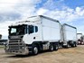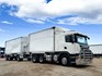 Combination Scania G480 tipper and Stoodley super dog, both fitted with high side alloy bodies, electric tarps, and grain chutes. Ready for bulk haulage or agricultural work.